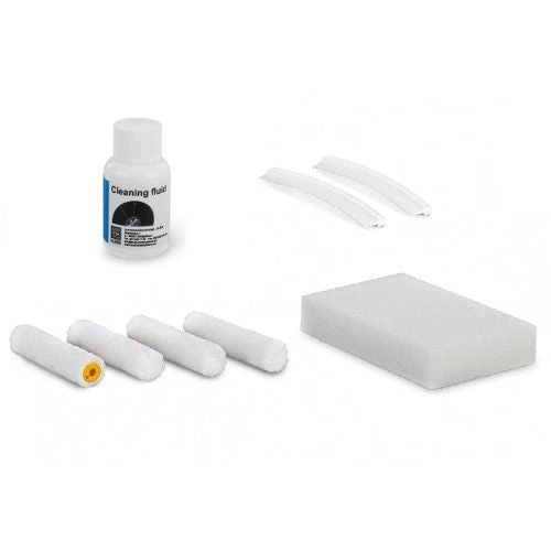 Includes a set of microfiber cleaning barrels (4), a replacement filter, a new set of wet wipers, and a 4 pack of cleaning fluid concentrate.