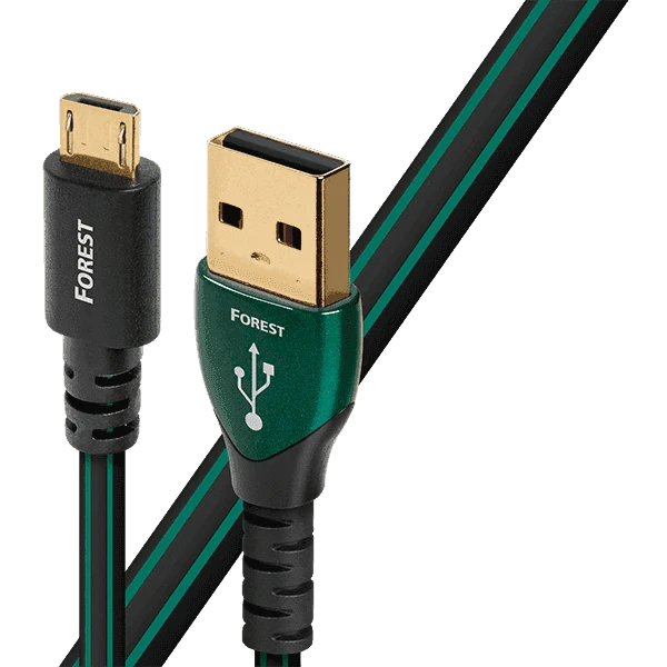 Audioquest Forest USB cable is available with the standard A-type to B-type termination, as well as Mini USB, iPod 30-pin, Micro USB, or USB 3.0 Micro connectors.