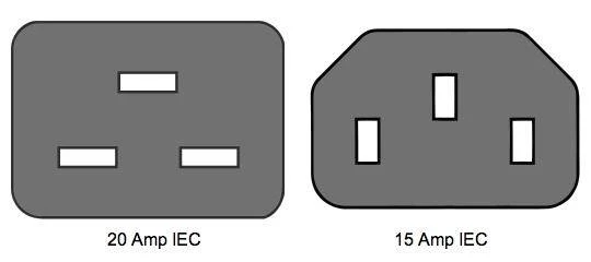 Some gear might say they are 20 amp, but still use the 15-amp IEC connector. To determine which one you need for your application, take a look at this drawing of the two types of IEC connectors. Pick the one that matches the IEC socket on your gear.