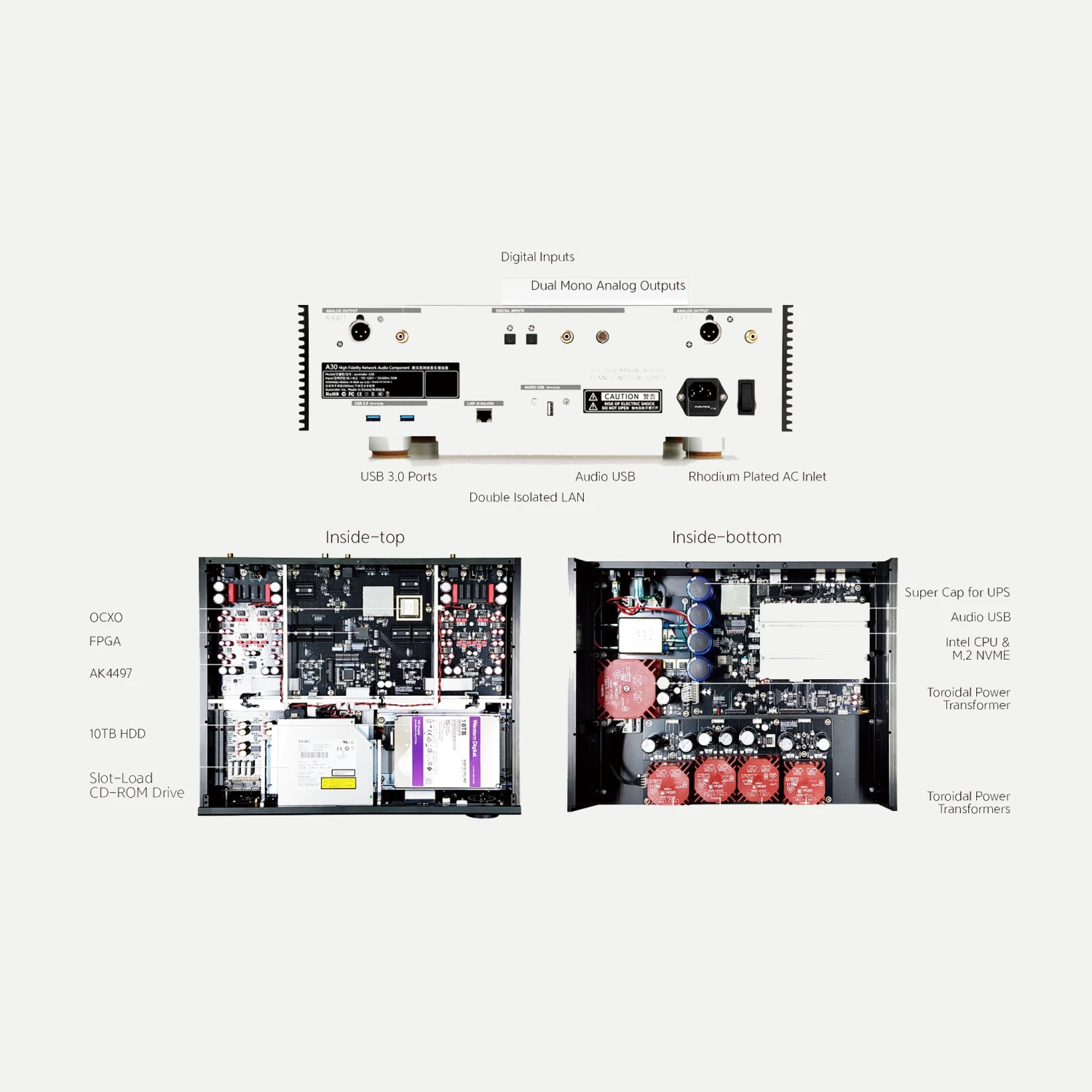 - Dual mono DAC with fully discrete ultra-low-noise dual-mono linear power supplies with built-in UPS function
