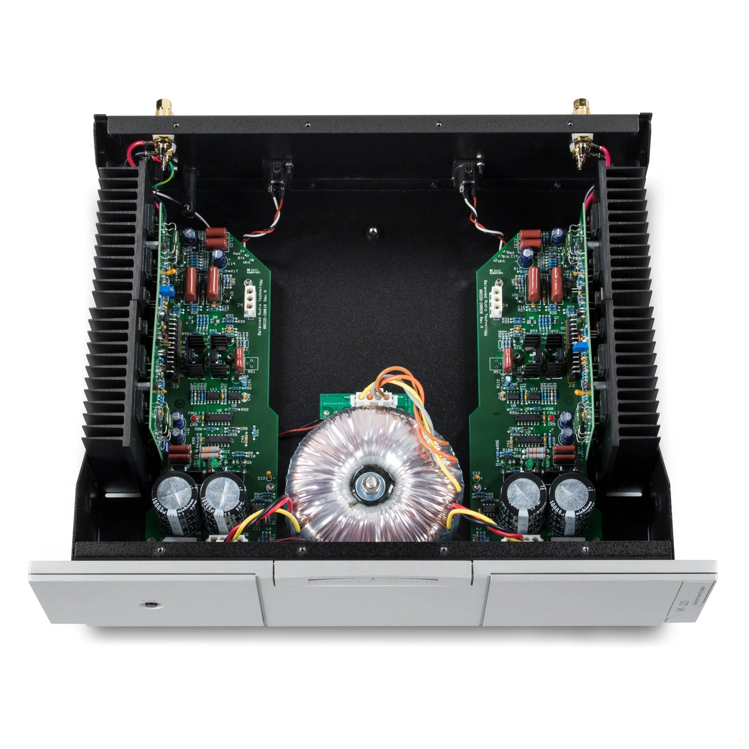 This power amp delivers 150 Wpc into 8 ohms. Hand selected bipolar transistors are used in a discrete Class AB output stage, and offers ultra-wide bandwidth circuits.Â