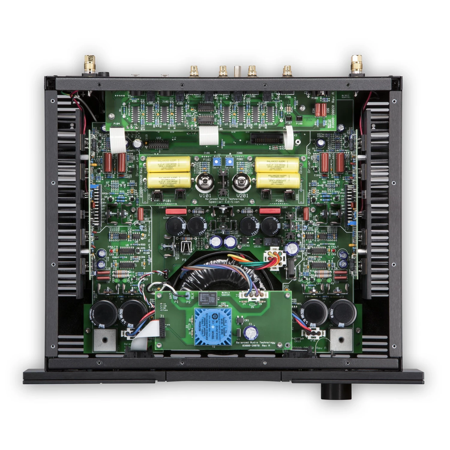 Many integrated amplifiers offer the benefit of convenience, but little else. The VK-3000SE is different by design. Its circuitry and build maintain the uncompromisingly high caliber found in Balanced Audio Technology’s flagship components. The output stage employs the symmetrical bipolar design used in BAT’s reference VK-6200 multichannel power amplifier. The preamplifier section uses the same 6H30 SuperTube Unistage design topology employed throughout BAT’s Special Edition tube preamplifiers—right down to the paper-in-oil signal capacitors. And the user interface offers the superb flexibility and ease of use that helped BAT set the industry standard. Even the included VK-R3 remote is machined from a solid block of aluminum. To literally cap it off, the VK-3000SE features a gorgeous aluminum top cover and side panels that add to its signature look. Inside and out, this integrated amplifier possesses an impeccable pedigree.