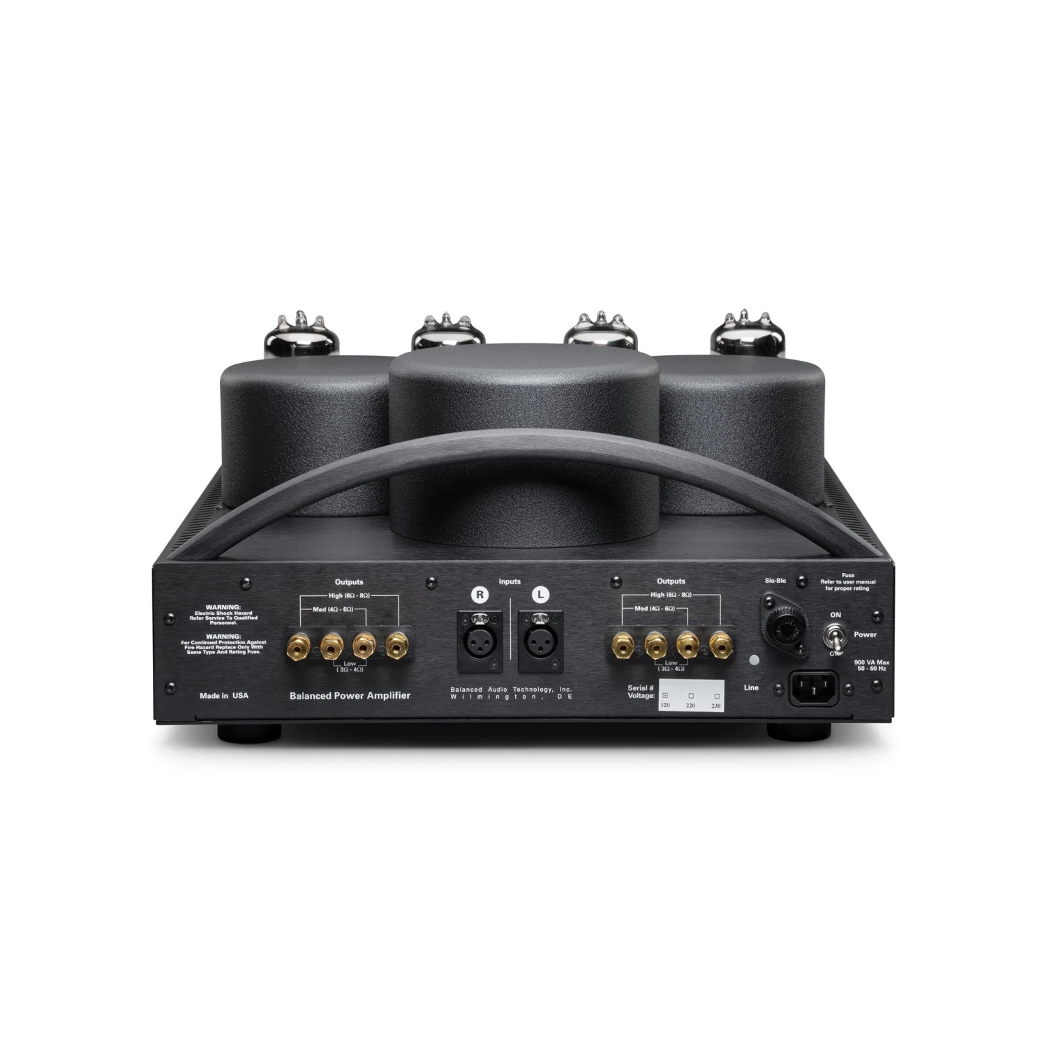 The Balanced Audio Technology VK-90t power amplifier features a fuse-less protection circuit, active current sources for its two gain stages, intelligent auto-bias circuit with LED indicators, and high-current, all-triode, zero-feedback, fully balanced topology.
