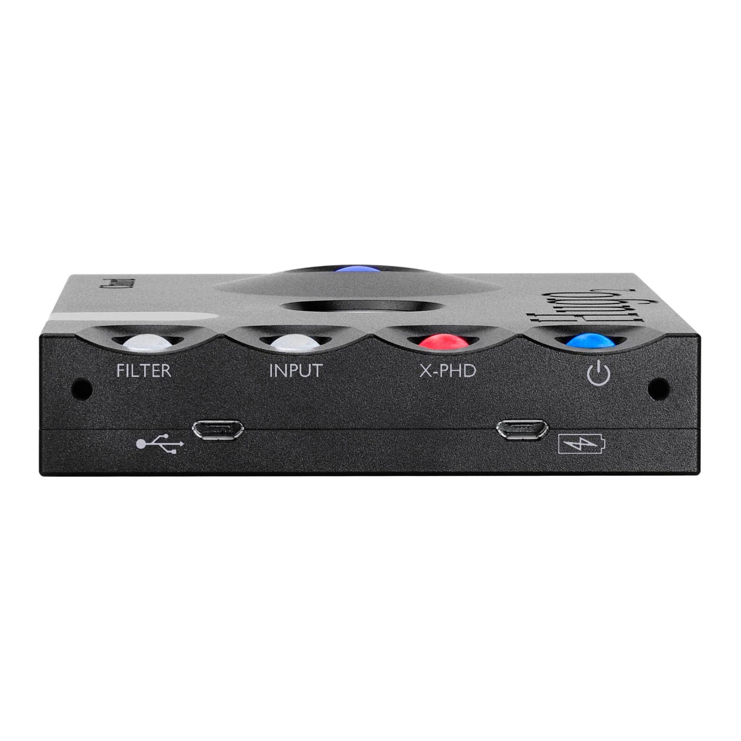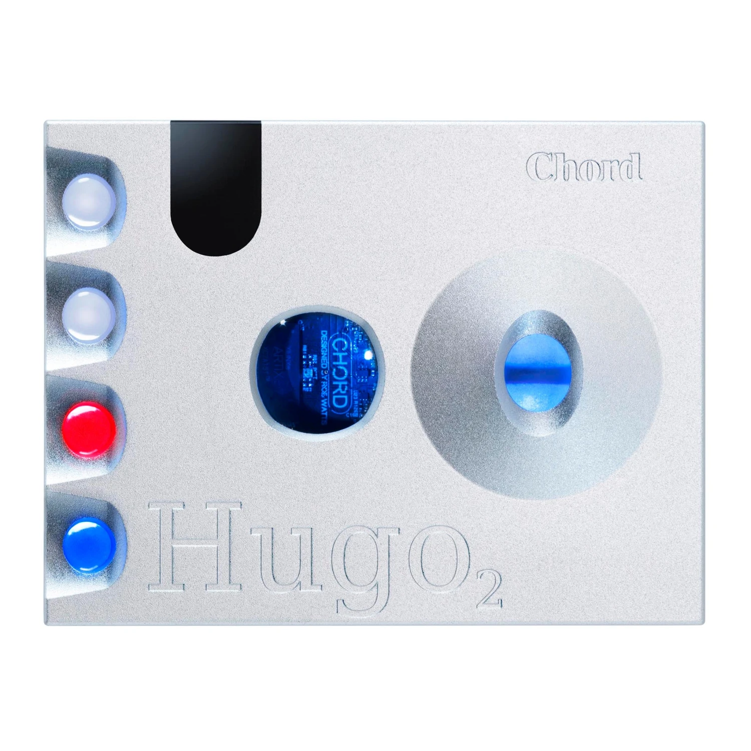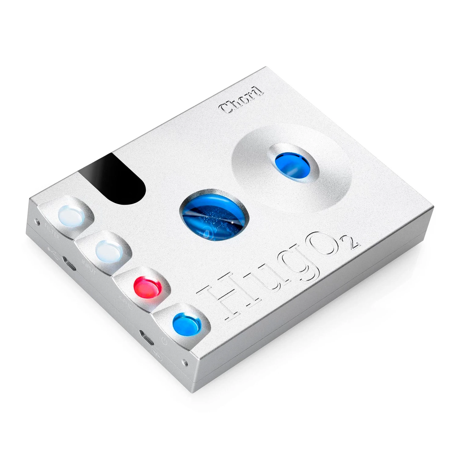 Hugo 2 features four spherical control buttons, which illuminate with color-coding information and control power, input, filtering, plus the unit’s crossfeed functions.