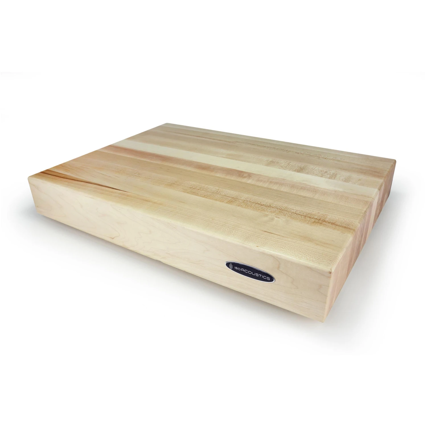 Turntables are carefully made with extreme precision to pick up the finest details in a record. The stylus navigating the tiny variations in the vinyl’s groves is a delicate process that is very sensitive to vibrations. The DELOS butcher block from IsoAcoustics decouples the turntable from the supporting surface and dramatically diminishes structural vibrations and resonances, resulting in greater clarity and detail.