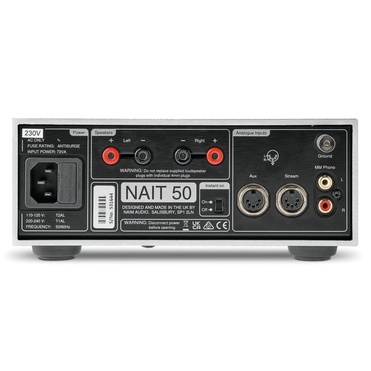 Like all Naim products, the Nait 50 is handcrafted in Salisbury, England, and the front panel is a delightful throwback to one of the most famous hi-fi products of all time.