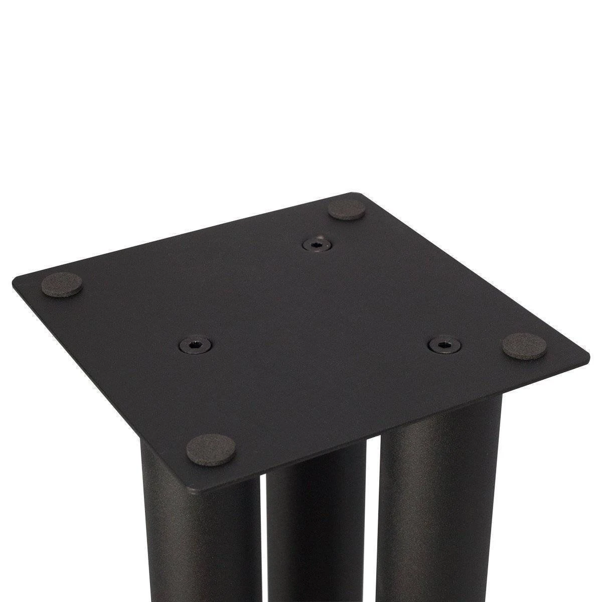 Pangea Audio’s LS300 stand features three large-diameter steel support columns coupled to steel plates at the top and bottom to form a rigid triangular shape that offers an incredibly strong platform for improved speaker performance. One column has openings at the top and the bottom for hiding speaker cables. Two columns can be filled with sand or steel shot for even better vibration damping.