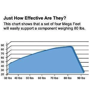 The recommended weight range for a set of four Mega Feet is 40 to 80 lbs per set, making Mega perfect for larger components. For source components and other lighter gear, we recommend Pico Feet.