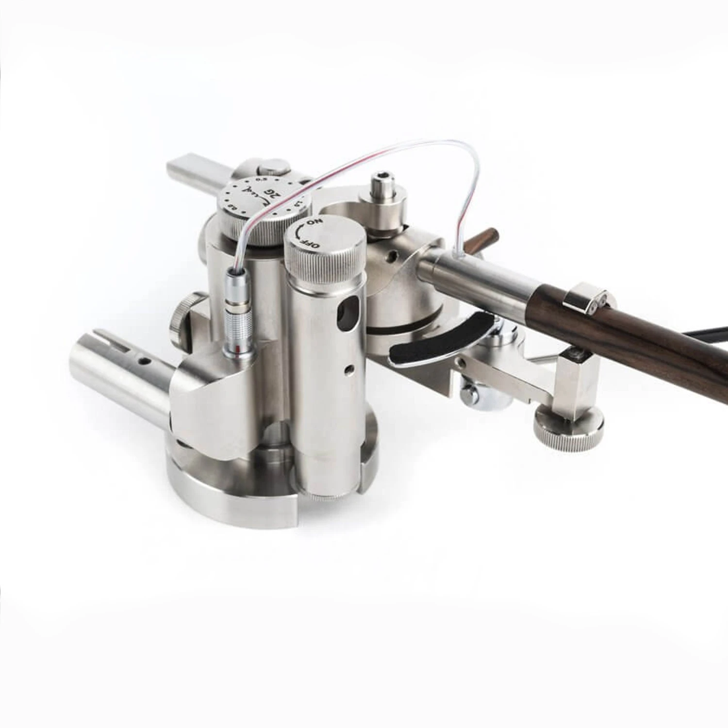 All Reed 2G tonearms have a unique azimuth adjustment system, which allows for replaceable arm wands using a high-quality LEMO connector. This allows you to change tonearm effective length and effective mass with no hassle.Â