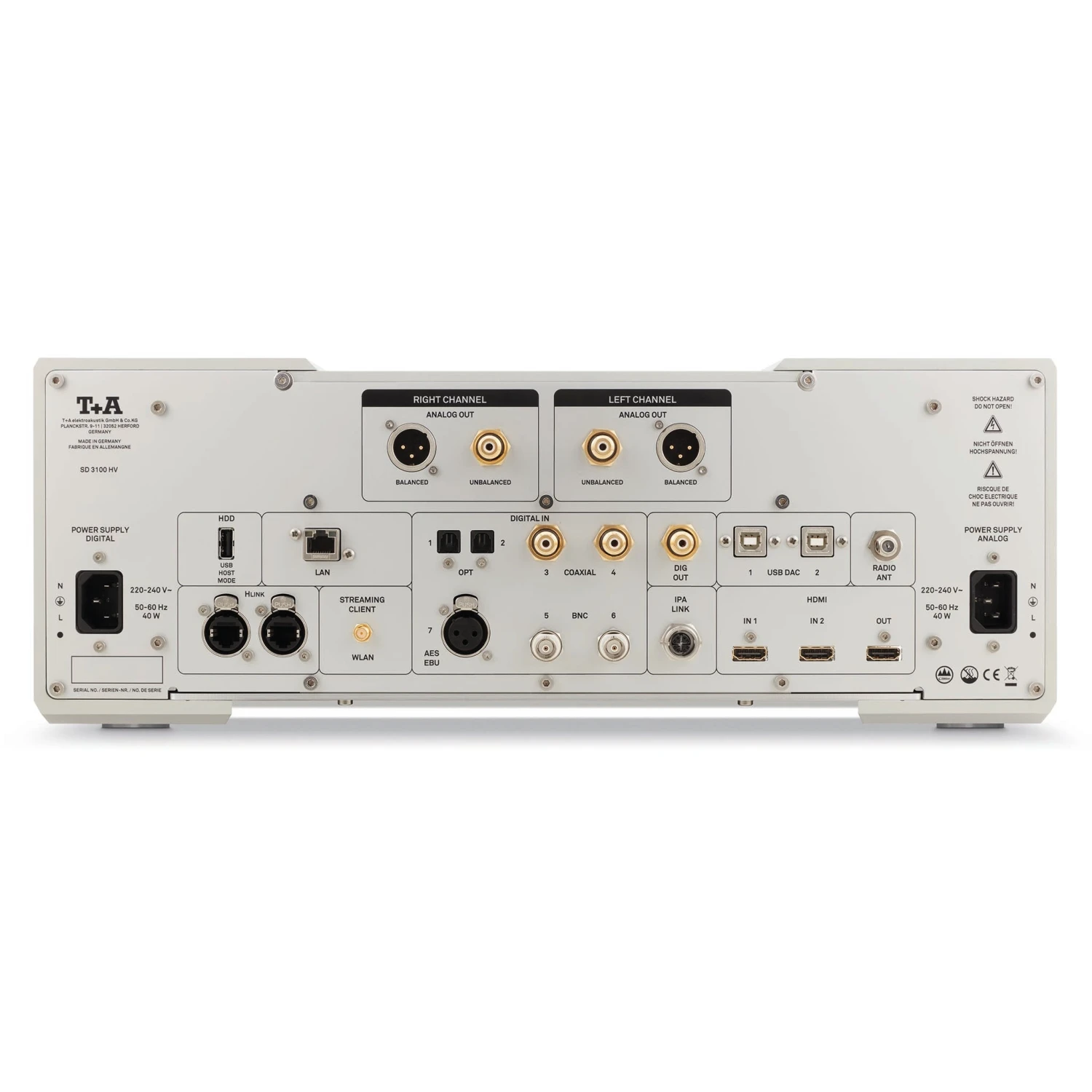 The headphone amp is no afterthought on the SD 3100 HV, but is an extremely high-performance analog design which also uses HV (T+A’s high voltage) technology. It works completely in Class A.