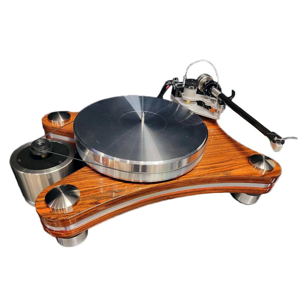 The Signature 21 is the next step up from the Prime 21. It features an upgraded JMW 10-3D Reference arm in a metallic black gloss finish with Nordost Reference wire. The chassis consists of an aluminum plate sandwiched between a composite material for improved dampening. Due to the additional weight of the table, this VPI uses the Classic Signature feet. The motor housing and all Delrin posts and armboards use hefty stainless steel for supports and bracing.